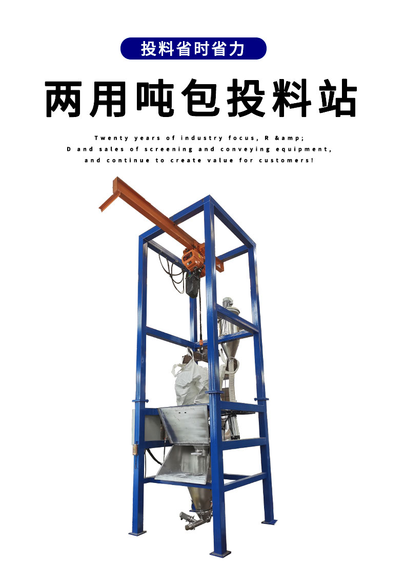 【物料要求】:粉末顆粒物料 【產(chǎn)品簡(jiǎn)述】:噸包投料站解決了噸包物料在投料過(guò)程中有粉塵飛揚(yáng)的現(xiàn)象,使用收塵裝置,解決粉塵飛揚(yáng)...